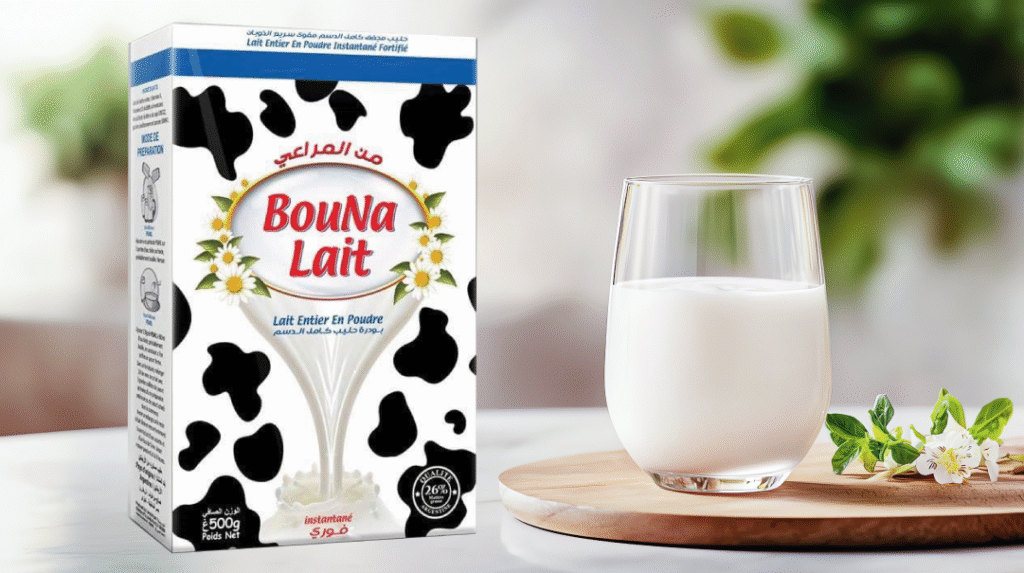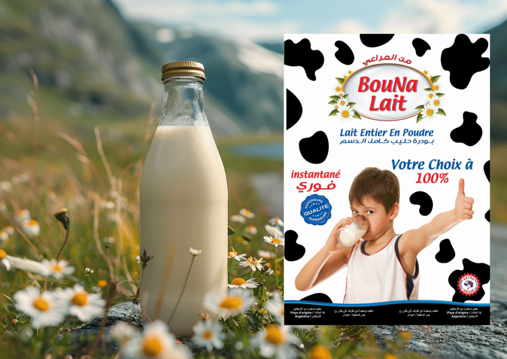 L’objectif était de créer un emballage à la fois attractif et fonctionnel, reflétant la qualité du lait tout en renforçant l’identité de la marque.
